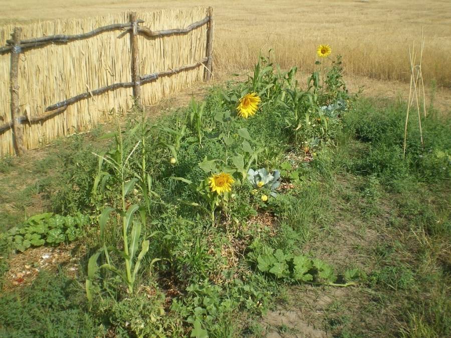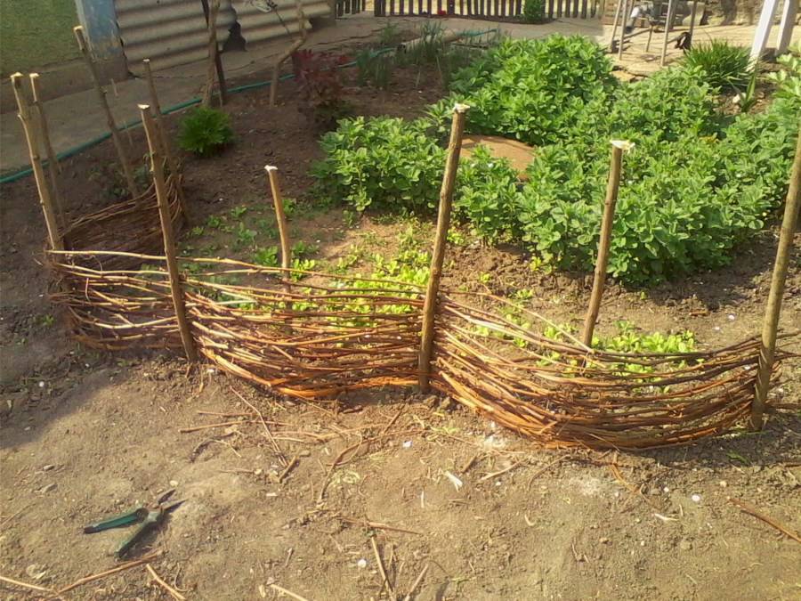 - Каждый прутик втыкается в землю и оплетает опоры, расположенные по горизонтали.