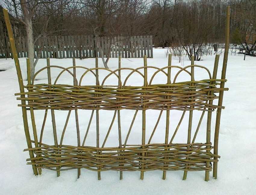 Вертикальное плетение осуществляется по аналогичному принципу, с тем отличием, что каждый прут рекомендуется фиксировать как сверху, так и снизу, чтобы конструкция не шаталась.