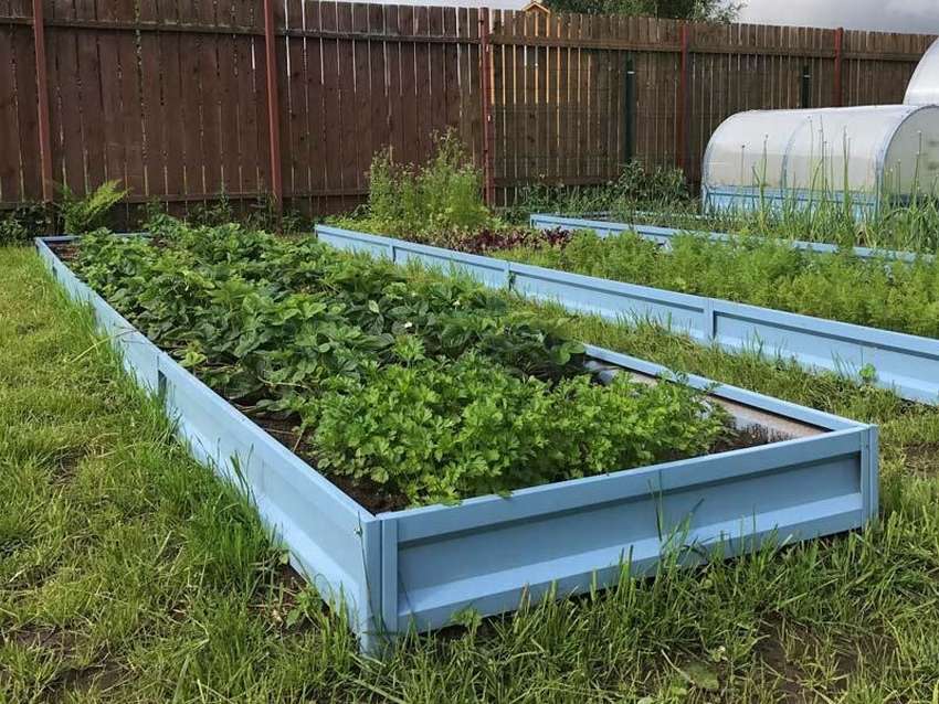Грядка своими руками из профнастила. Смотрится не менее красиво.