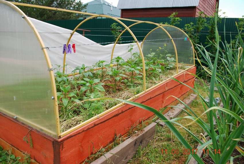 Грядка-парник – удобное и практичное решение. Для того чтобы сделать такую, вам понадобятся дерево и целлофановая пленка.