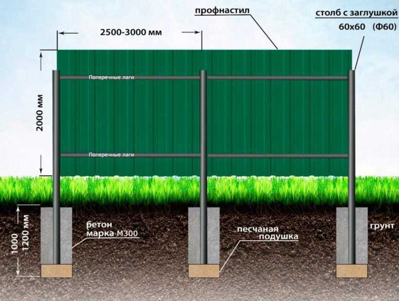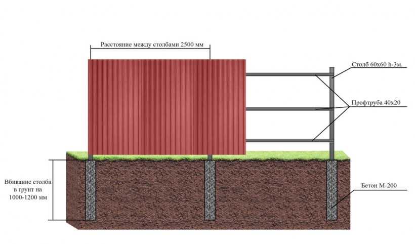 - Ямы для установки опор копают на расстоянии 2-2,5 метров.