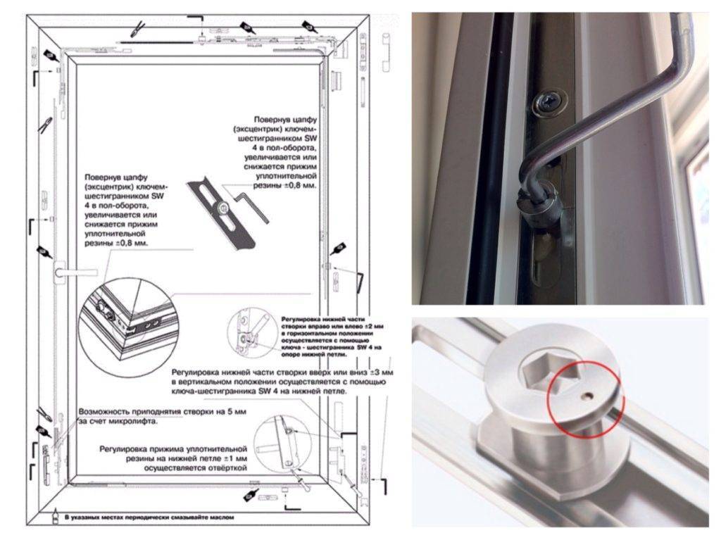- С фурнитурой нового образца работать сложнее, так как она имеет декоративные накладки и дополнительный регулировочный крепеж. Прежде чем снимать створку, его нужно ослабить.