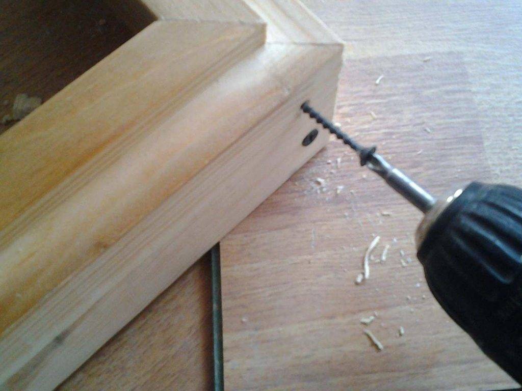 В-третьих, конструкцию можно собрать под углом в 900. Для этого горизонтальный брус просто прикладывается к вертикальному элементу и соединяется при помощи саморезов. В этом случае на деталях, которые расположены вертикально, отпиливается притвор. Чтобы МДФ не треснул, предварительно просверливаются отверстия, диаметр которых должен быть меньше диаметра самореза на 2-3 мм. Для получения жесткой и надежной конструкции, каждое место соединения закрепляется 2-мя саморезами.