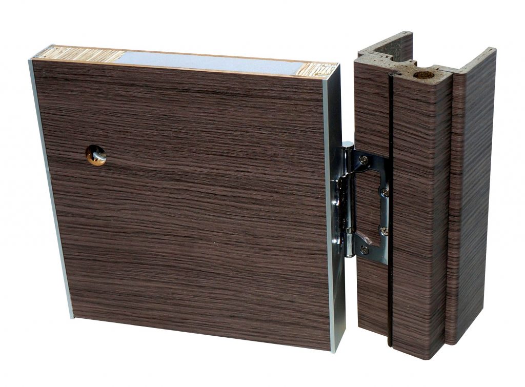 - Корпус задвижки вставляется в углубление таким образом, чтобы он размещался в одной плоскости с уровнем торца дверного полотна.
