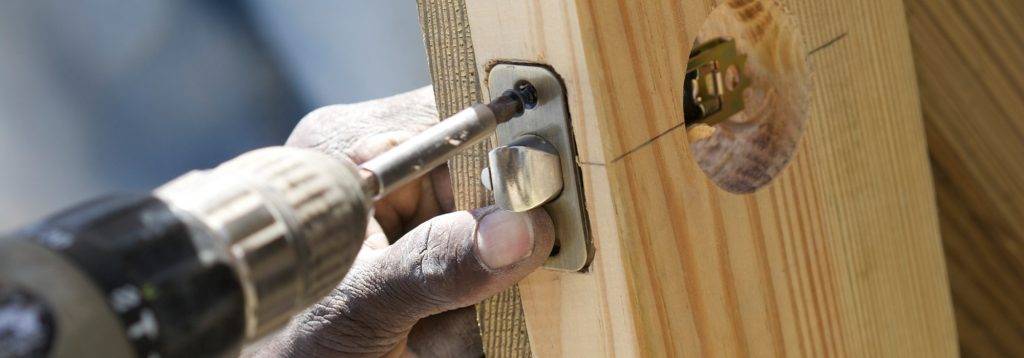 Нужно учитывать, что работы со стамеской нуждаются в дополнительных умениях, где точность и осторожность имеют ключевое значение. Замок комфортней врезать на установленное полотно, когда строительная пена уже зафиксировала его в проёме и коробке
