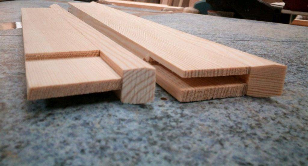 При этом отрезки имеют обработку только 3-х сторон – сделать их необходимо очень гладкими, 4-ая помещается возле стены. Ориентируясь на ширину доски, делают разрез, в который будут вставляться дверь.
