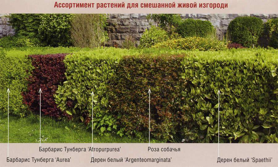 Вдоль невзрачной изгороди часто высаживают плотные ряды кустарников или деревьев. Украсить забор поможет вечнозеленая западная туя, ягодный тис или обыкновенный можжевельник. Если живую ограду планируют состригать, то лучше посадить барбарис Тунберга, пурпурную иву или боярышник.