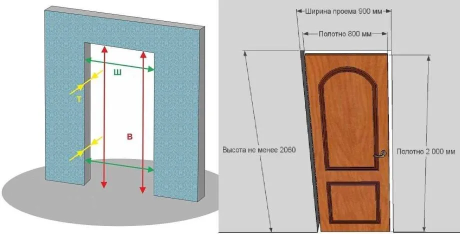 После выбора материала выясняют габариты существующего прохода. Чтобы получить нужные размеры для эскиза, демонтируют дверное полотно и коробку. Замеры лучше проводить с напарником, чтобы избежать неточностей; измеряют имеющуюся ширину, высоту, размер по диагонали и толщину стены.