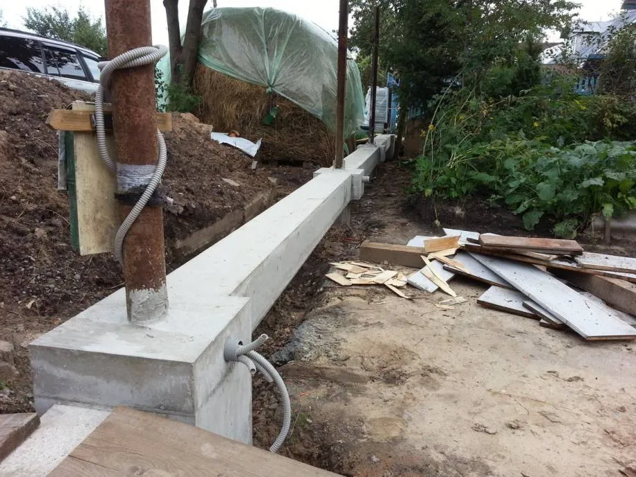 Висячий ростверк (на винтовых сваях) не рекомендуется; он лишь удорожает строительство. Выходом для тяжелой конструкции является применение низких балок (наземных, подземных), с опорой на сваи (или столбы). Строительство тяжелого забора на глинистой почве включает следующие этапы: