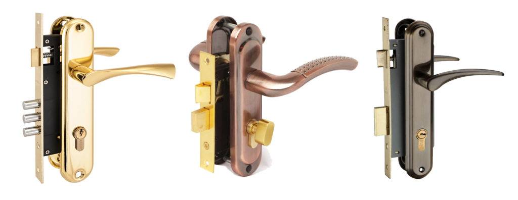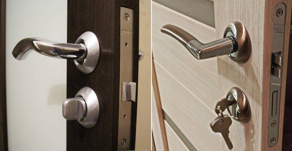 В любом варианте устройства должны быть врезными. Учитывают обычно толщину фурнитуры. Особенность стандартных дверей — неодинаковая толщина полотна. Есть варианты с толщиной 35 мм, а есть 45 мм. К таким моделям подбирается соответствующая фурнитура, чтобы не получилось так, что замок не сходится по толщине с дверью.