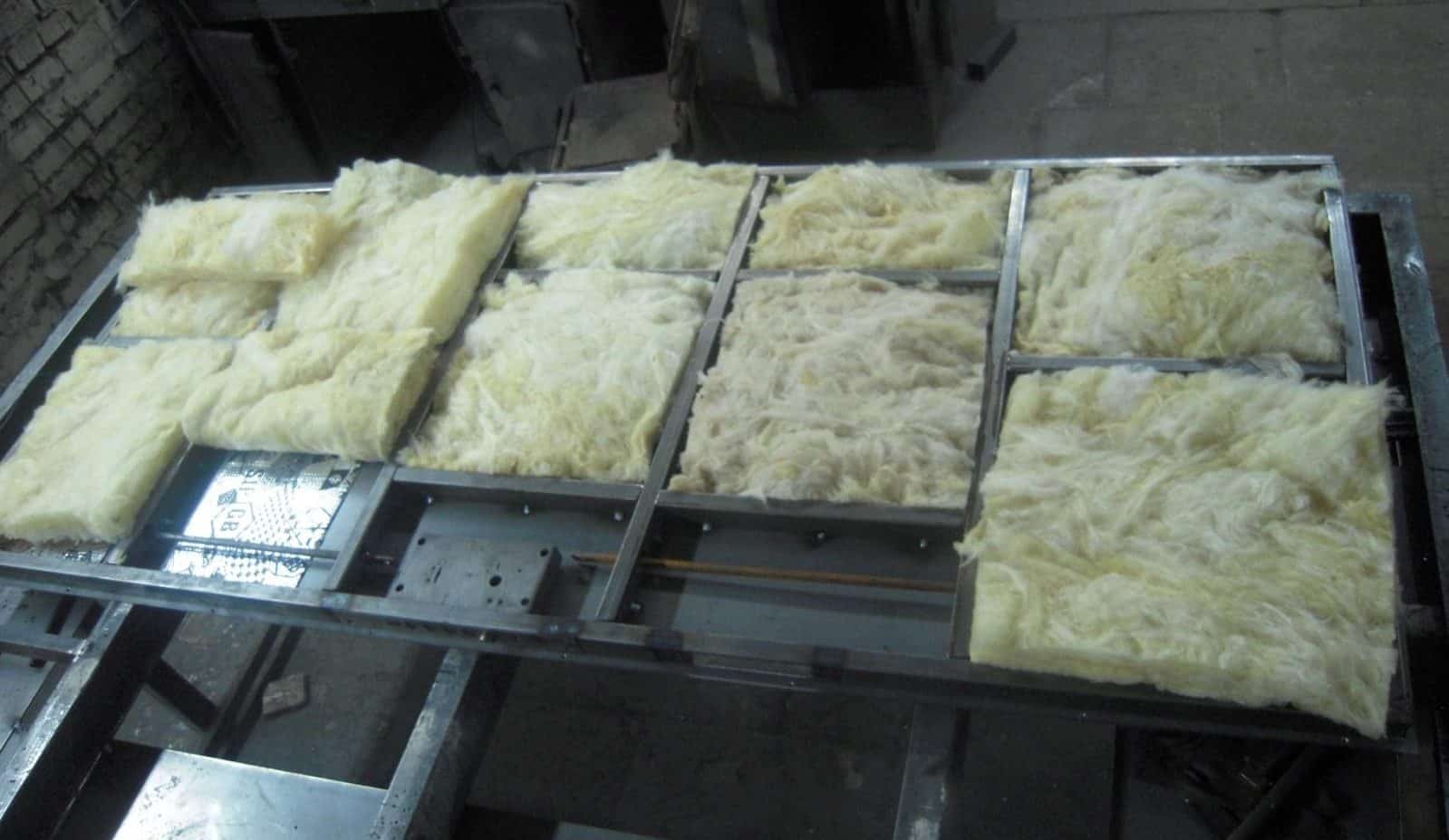 Укладка твердого утеплителя на металлическую дверь