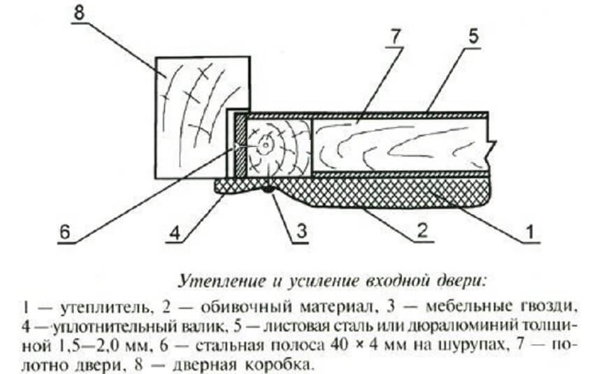 Схема утепления входной двери