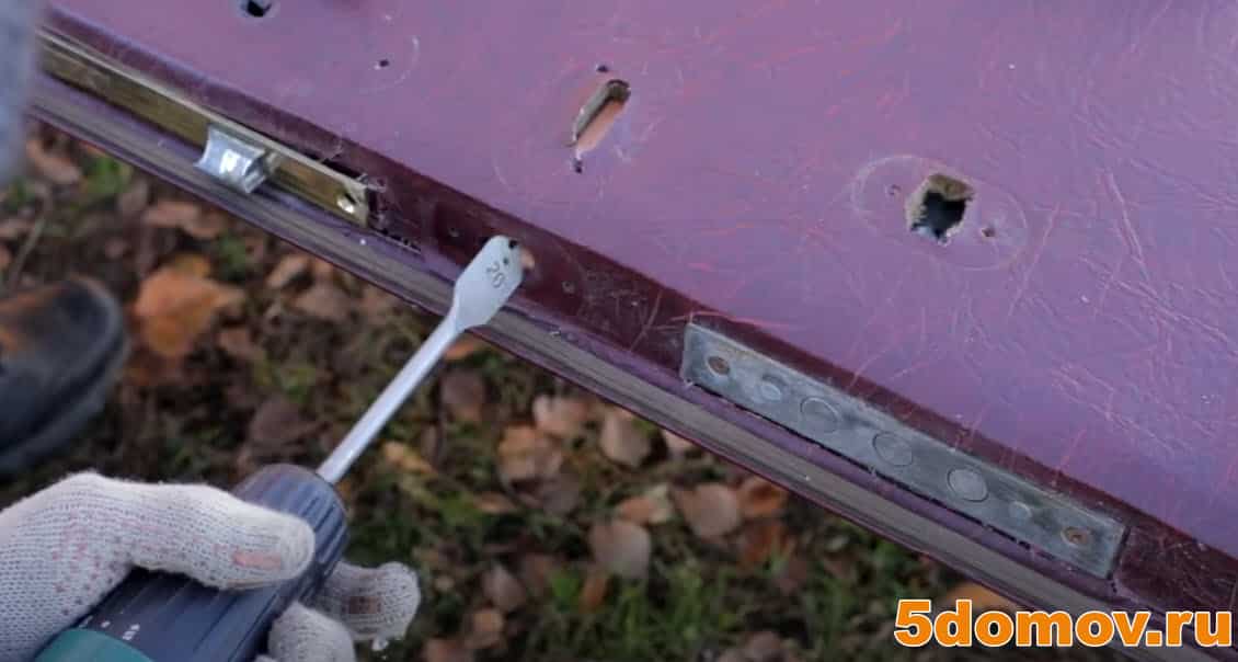 Высверливание отверстия под замок в утеплителе двери