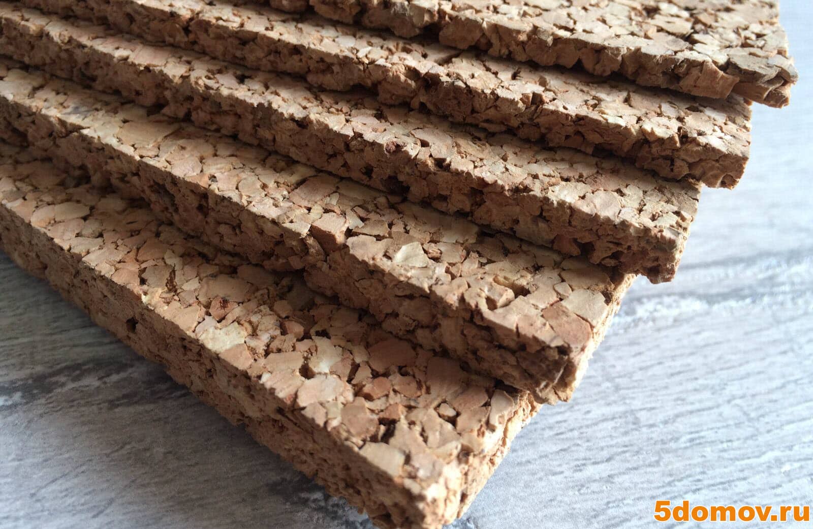 Свойства пробкового утеплителя во многом зависят от толщины листа. В среднем, он имеет теплопроводность — 0,034-0,078 Вт/(м·град), плотность — 200-300 кг/м3, коэффициент звукоизоляции — 0,10 на 1000 Гц. Данный материал добывается из коры дуба. Выпускается в виде ламината, рулонов или пластины. Для утепления двери лучше брать листы.