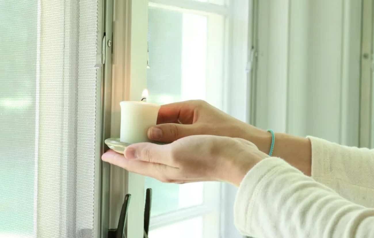Место сквозняка можно проверить при помощи свечи, медленно проведя ей по периметру двери. Если где-то будет сквозняк, пламя будет дергаться