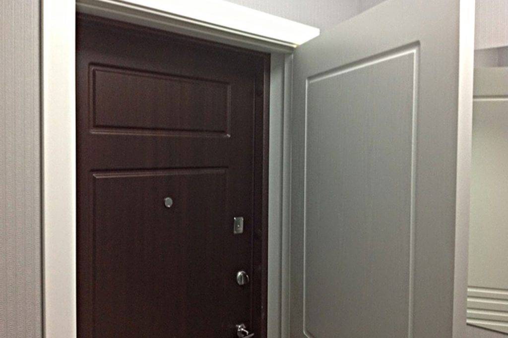 Такое решение активно применялось потребителями в конце прошлого века, когда технология изготовления входных дверей ещё не была доедена до совершенства. Сегодня подобная методика используется реже и исключительно для стальных дверей эконом класса. Существует два базовых варианта монтажа дублирующего дверного полотна: