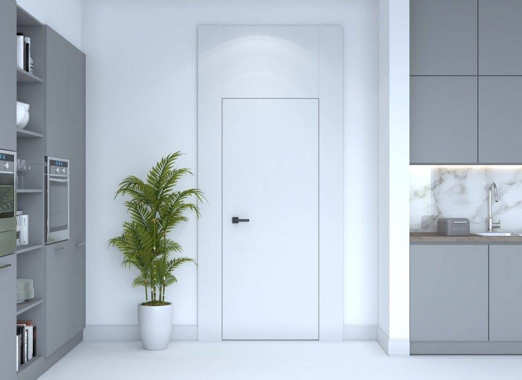Нейтральный цвет двери, поддерживаемый наличниками и плинтусами