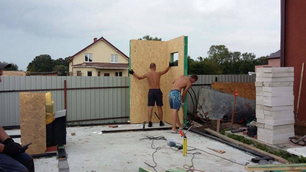Выполнив все работы по обвязке чернового пола с фундаментом можно переходить к второму этапу: возведение каркаса из ОСП панелей на ленту.
