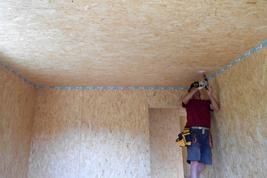 Собрать потолок в гараже из осп несложно. Если потребуется утеплить потолок дополнительным слоем теплоизоляции, необходимо предусмотреть каркас, если же утеплитель использоваться не будет, достаточно простой обрешетки из деревянных реек или брусков.