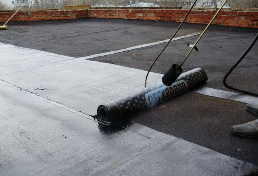 На слой рубероида укладывается рулонный битумный материал, который можно разогревать газовой горелкой по мере постепенного раскатывания на поверхности. Для надежного прилегания мастику нужно плотно утрамбовывать, прижимая к крыше.