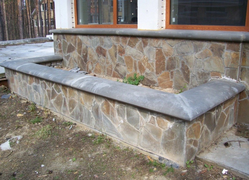 От кровельного парапета такая стенка отличается только тем, что там её утепляют, а здесь просто декорируют. Торцовая поверхность любой кладки точно так же нуждается в защите, поэтому для неё в продаже можно увидеть элементы самых разных форм и материалов изготовления.