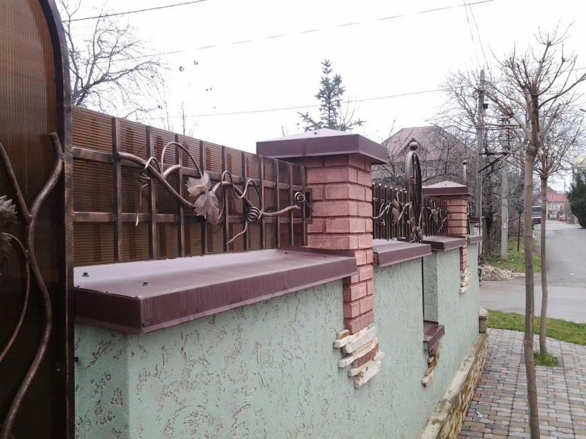 Здесь точно так же обрез кладки венчают элементы парапета и навершия столбов, изготовленные из бетона, камня, керамики, металла, полимерпесчаного композита. Только когда эти маленькие, но очень важные детали забора установлены, он примет респектабельный и завершённый вид.