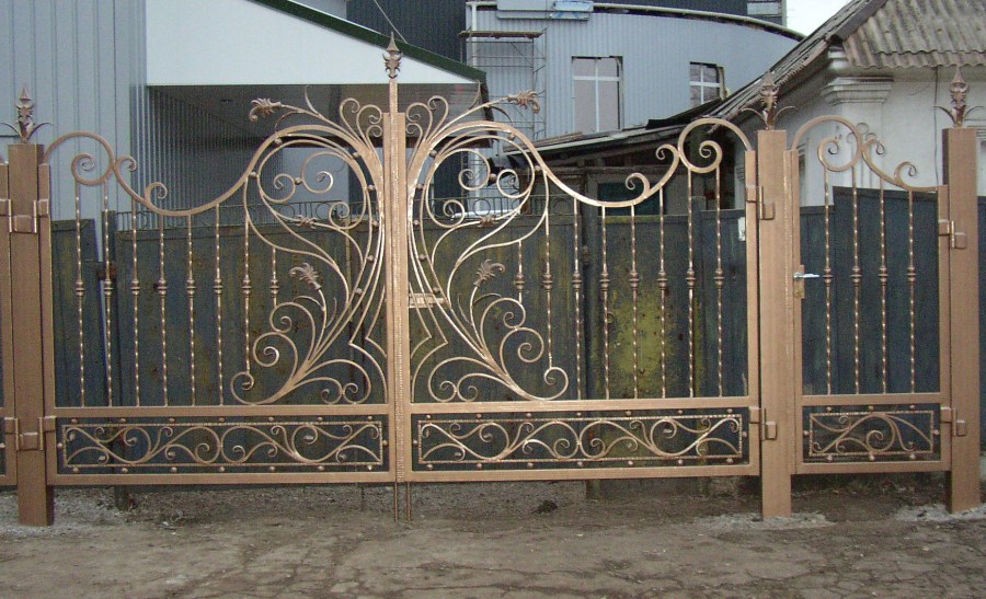 Когда весь декор зафиксирован на калитке приступаем к его покраске. Чаще всего их делают при помощи золотой или контрастной краски. Для этого необходимо приобрести специальные лакокрасочные составы, которые предотвратят появление ржавчины на поверхности железных деталей.