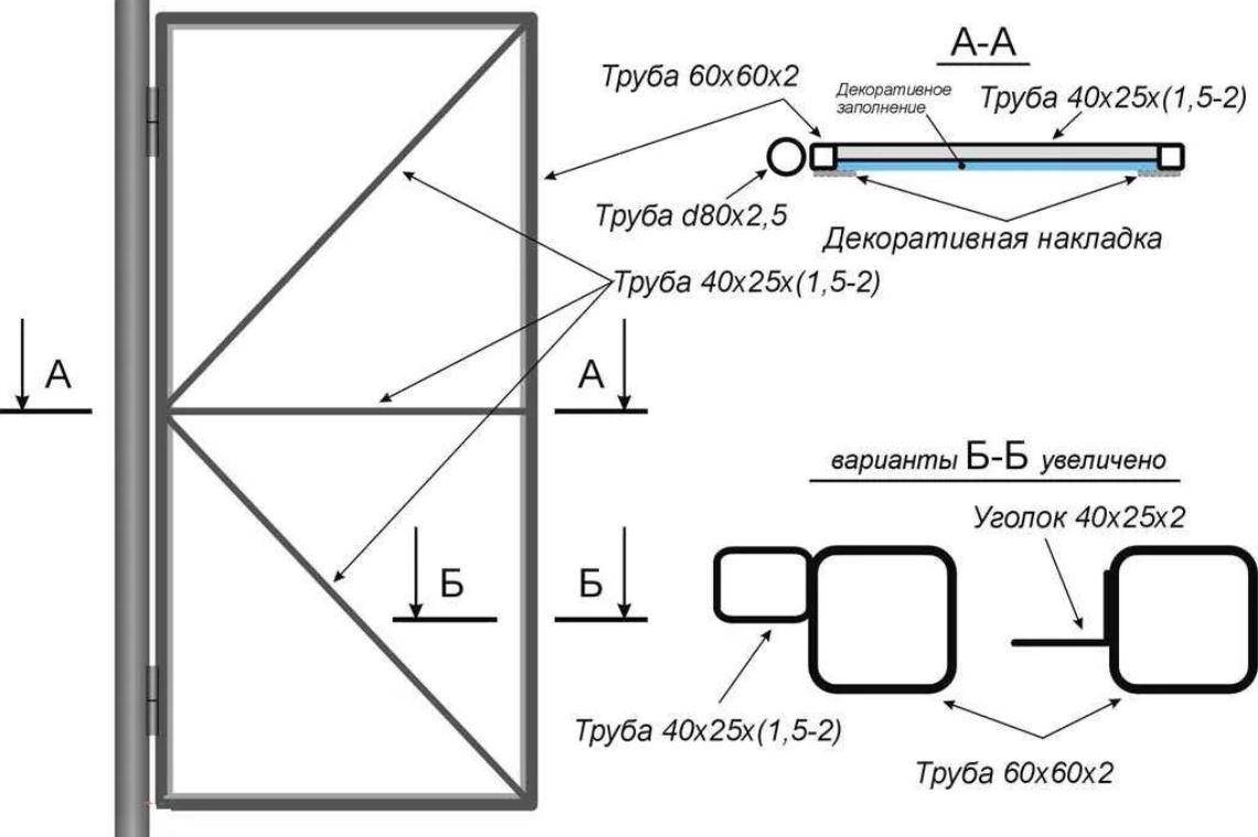 Вариант ворот с укосинами.Вариант ворот с верхней перемычкой и перекладинами.