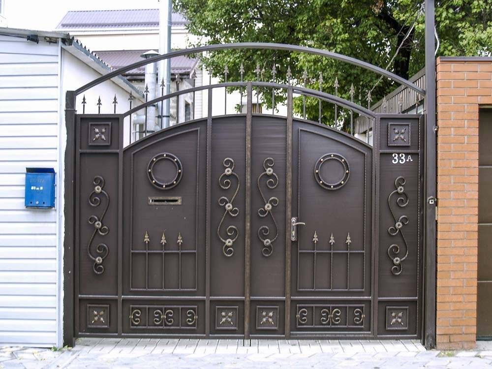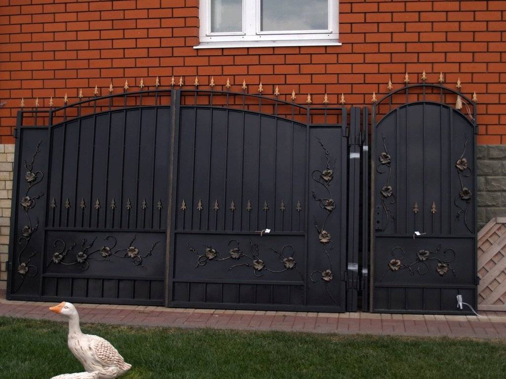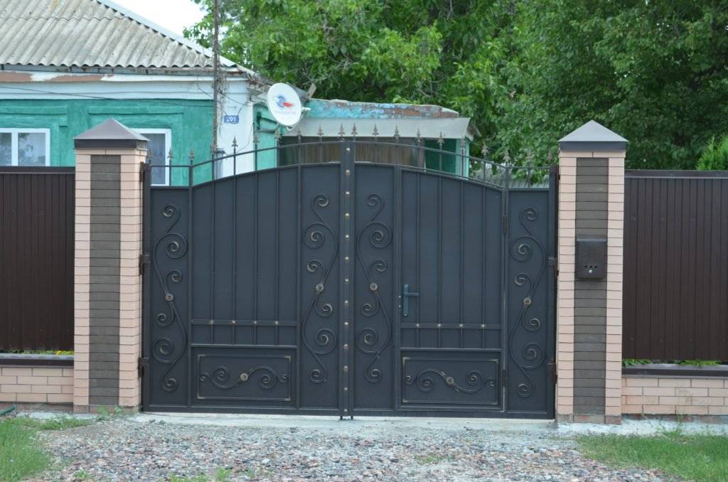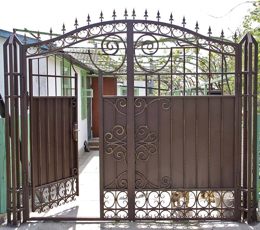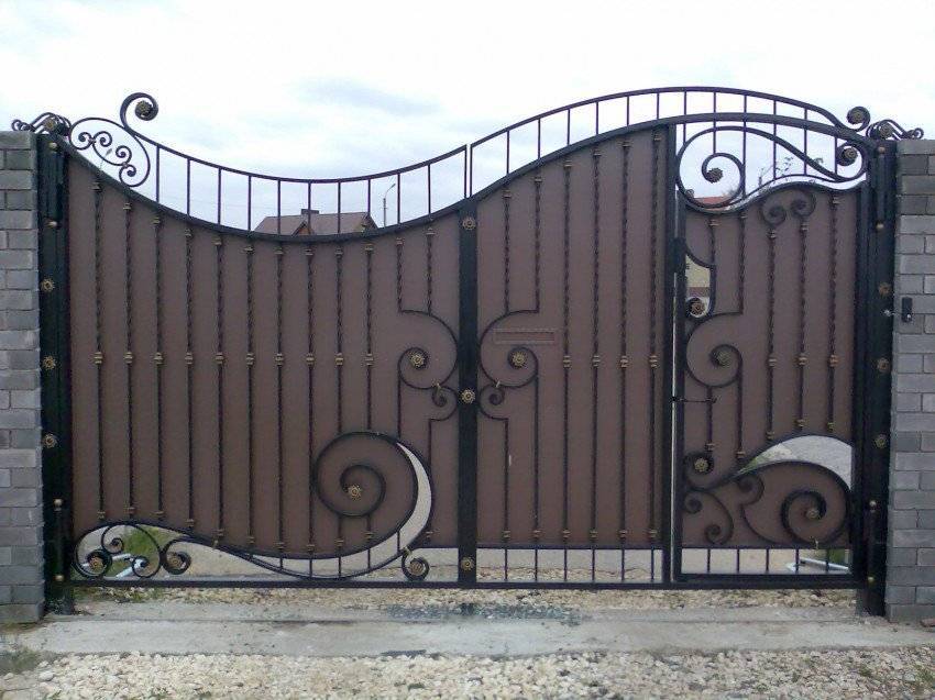 - С коваными элементами. Они будут смонтированы поверх листа. Тем самым она превратиться из преграды для входа во двор в произведение искусства.