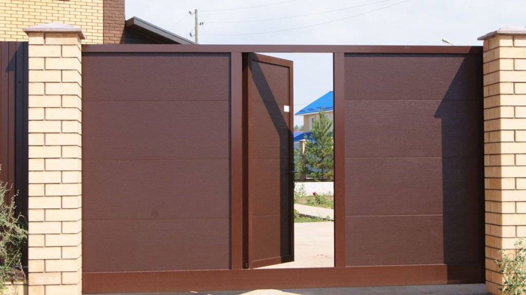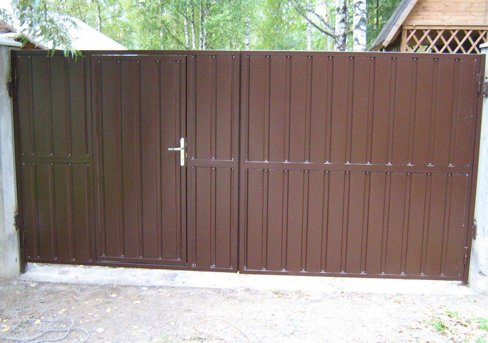 Калитка из профнастила может быть расположена рядом или находиться отдельно от ворот. Калитки, встроенные в створку ворот, уже не встречаются из-за невысокой эстетичности.