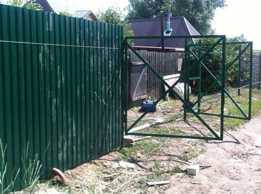 Самая простая в исполнении конструкция — это распашные ворота из профнастила
