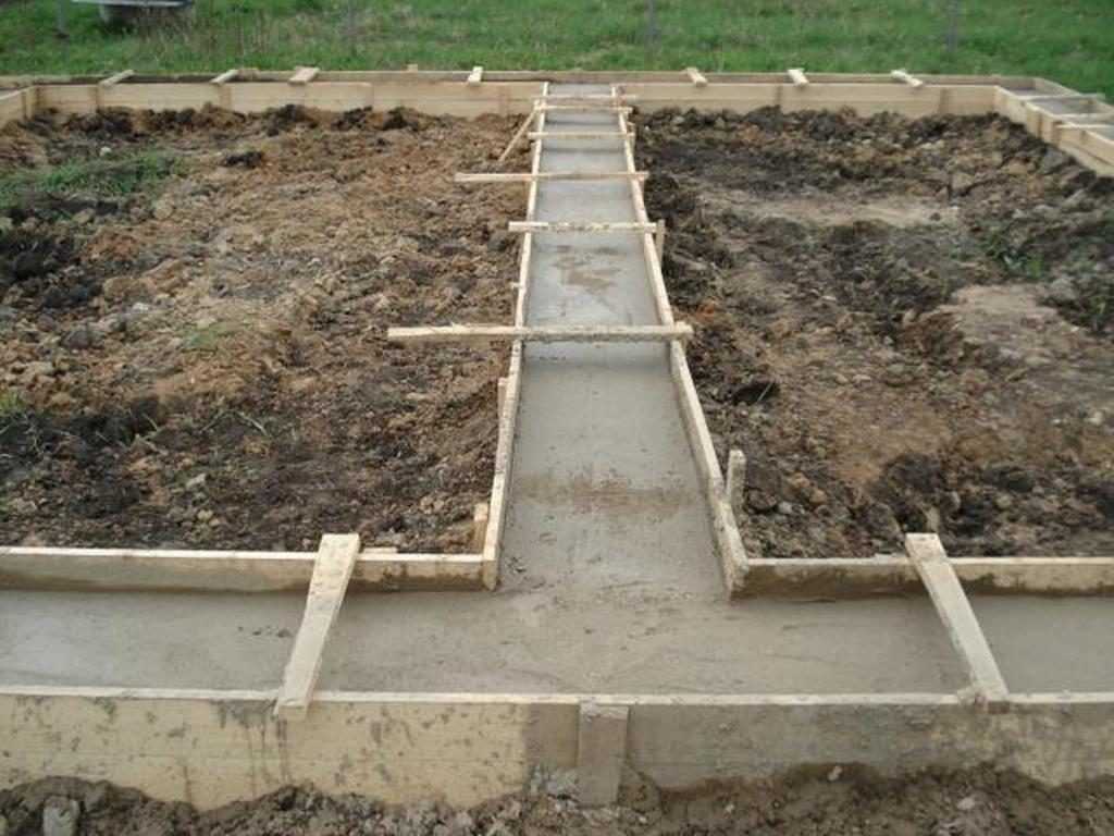 Ленточный фундамент. Прекрасно выдерживает вес каркасной конструкции. Сделать его сложнее, так как придётся не только изготавливать опалубку, но и произвести армирование конструкции с выполнением всех требований технологии. На постройку уйдёт больше времени, поскольку потребуется ждать, пока схватится и созреет залитый бетон.