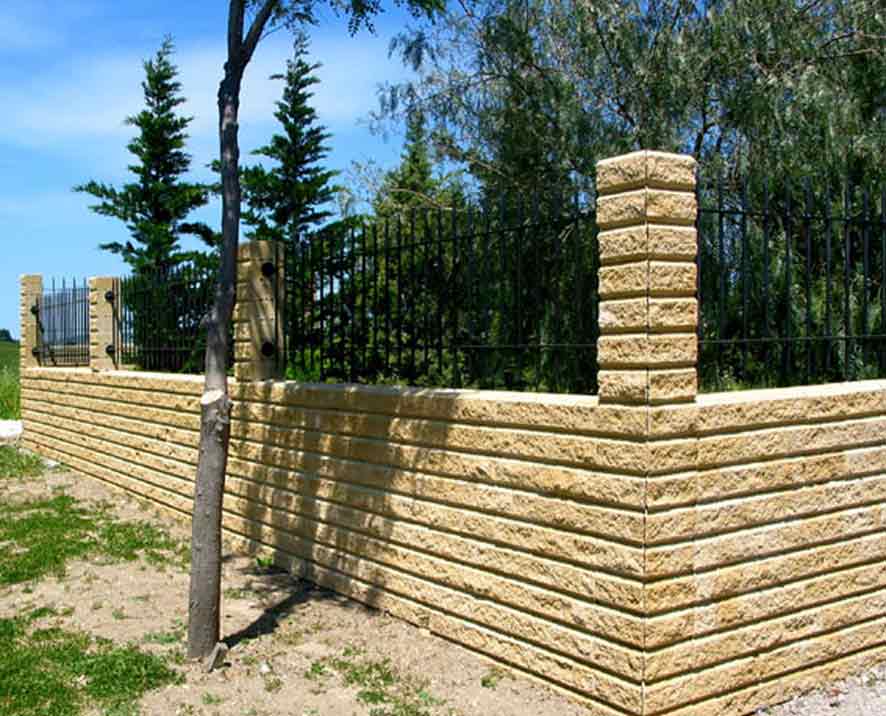 Для этого в пролетах между столбами кладку выполняют на два-три ряда ниже, чем в классических глухих заборах из камня. Недостающие ряды заменяют декоративными секциями. Таким образом, ограждению придают эстетику, а домовладение остается «за кадром».