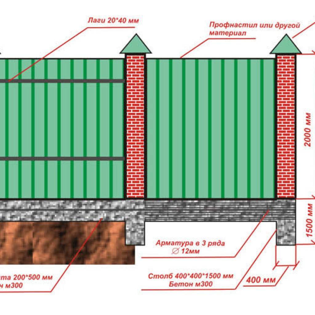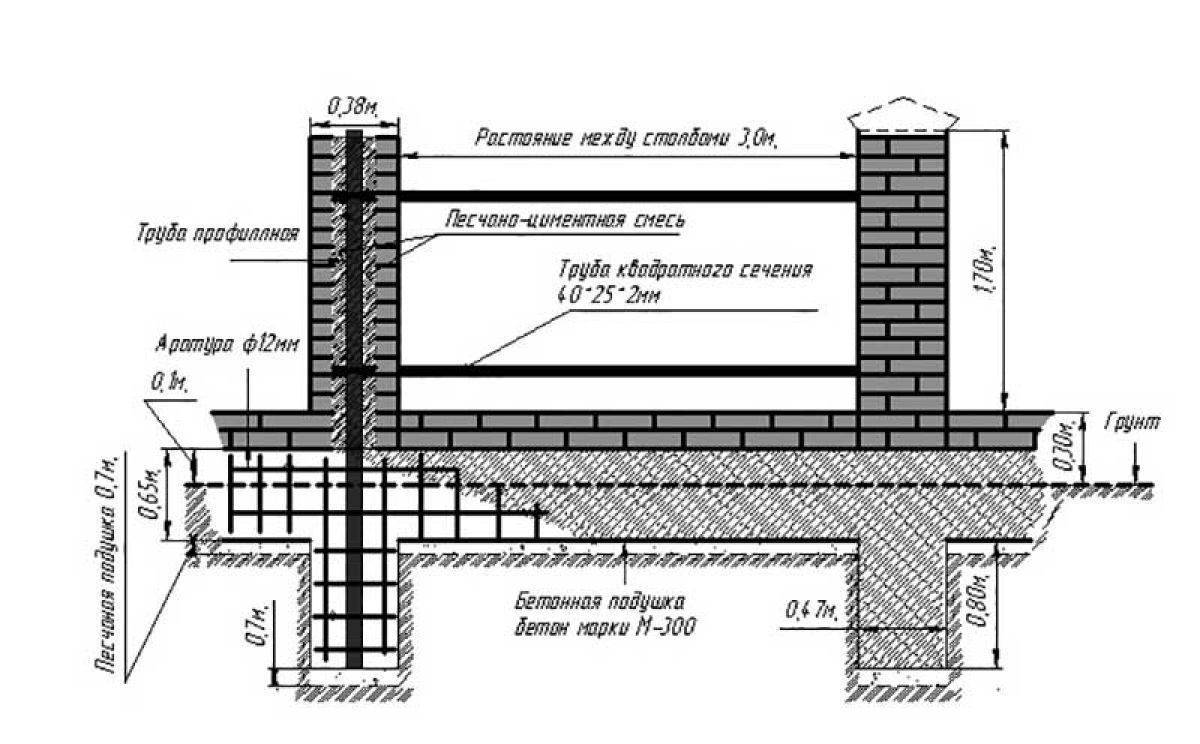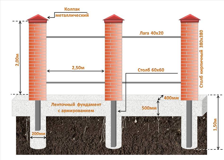 Как соорудить фундамент для забора со столбами из кирпича