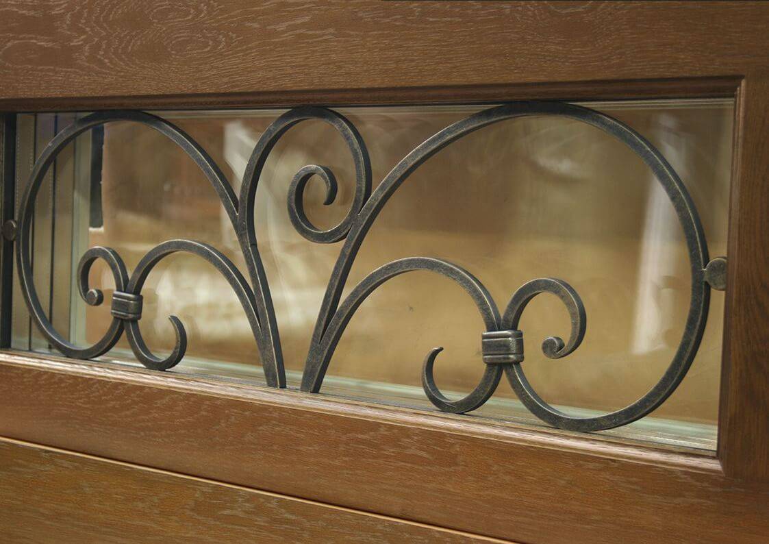 Использование кованых элементов позволяет придать двери оригинальность и повысить функциональность.