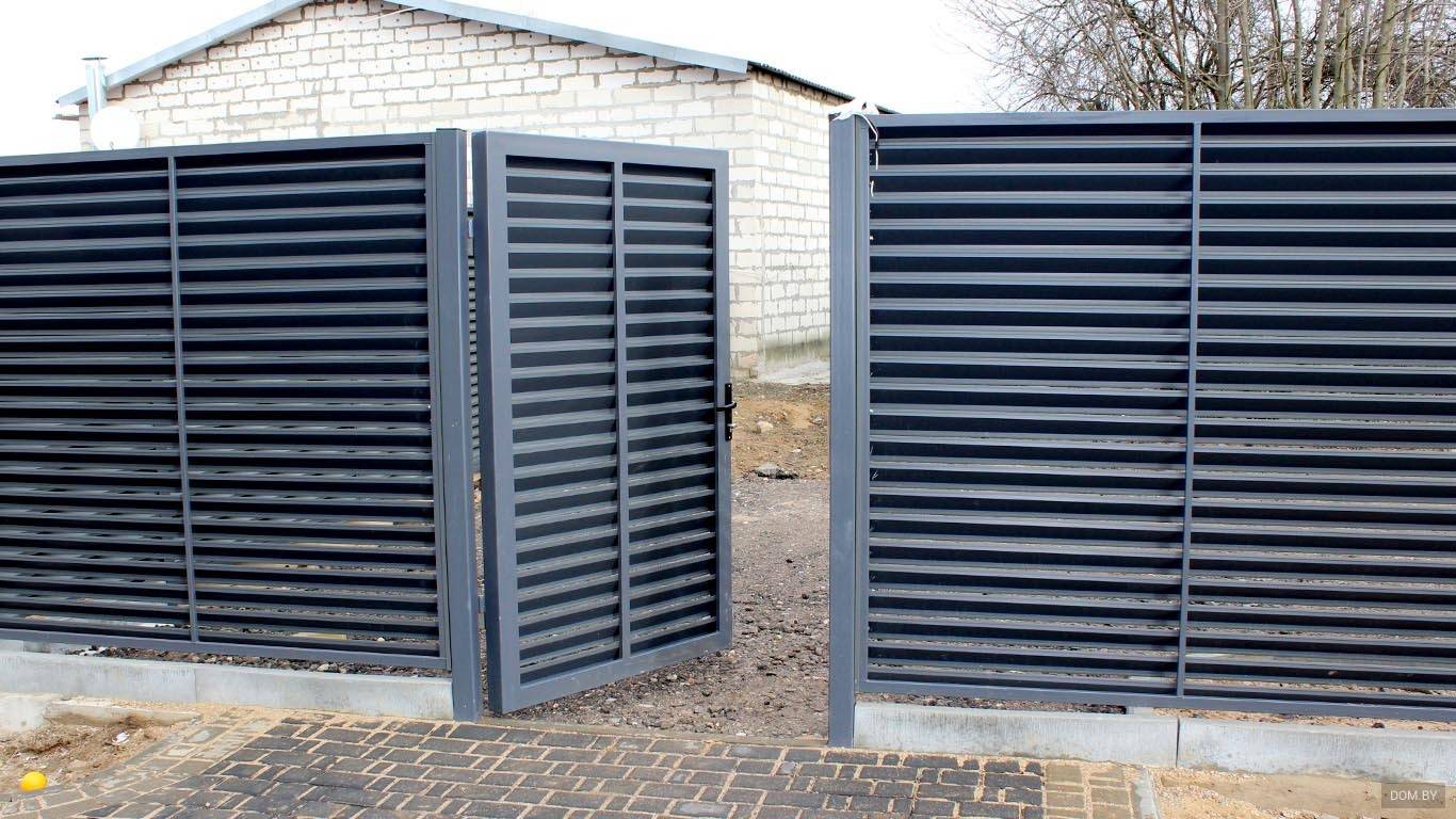 Такие конструкции могут иметь различное расположение профнастила, что позволяет получить ограду вертикального или продольного типа. Конструкции достаточно просто монтируются, а также разбираются. Такие элементы являются прекрасным решением для возведения оград временного типа.