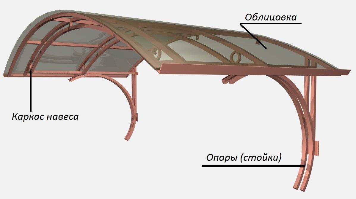 Конструкция навеса из поликарбоната – устройство козырька над входом