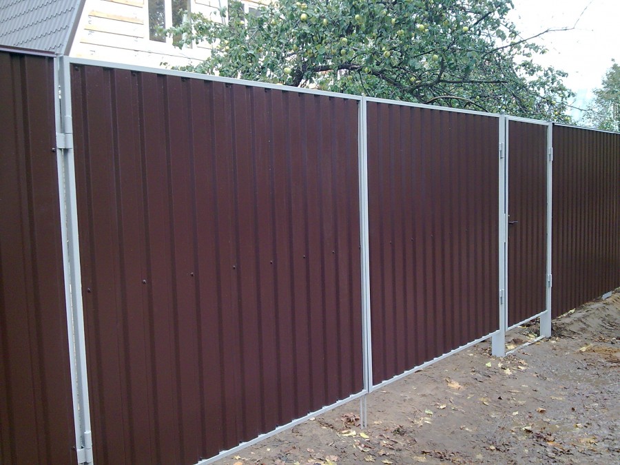 Заграждения из полотен профлиста довольно качественны. Хорошо смотрятся в комбинации с каменными элементами, металлом, деревом. Цветовая палитра многообразна, вес небольшой, а конструкция долговечна.