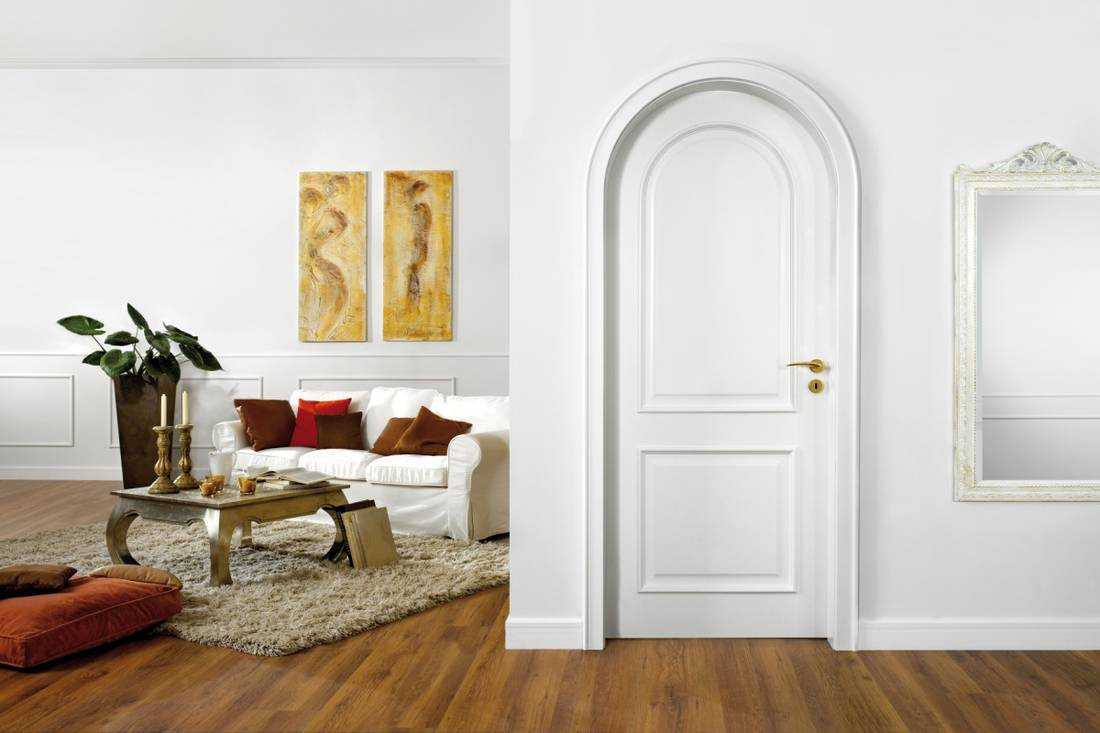 в зале и гостиной хорошо смотрятся белые двери с шикарным украшением;