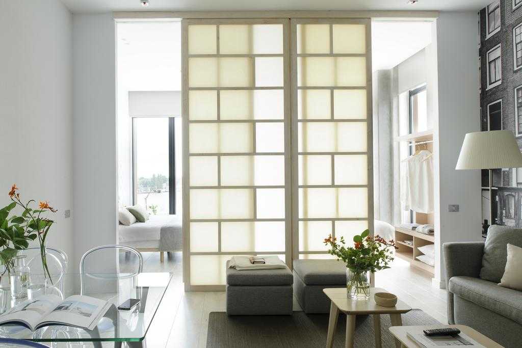 японский интерьер отлично дополнят межкомнатные двери из стекла с орнаментом в виде иероглифов, вышивки и животных.