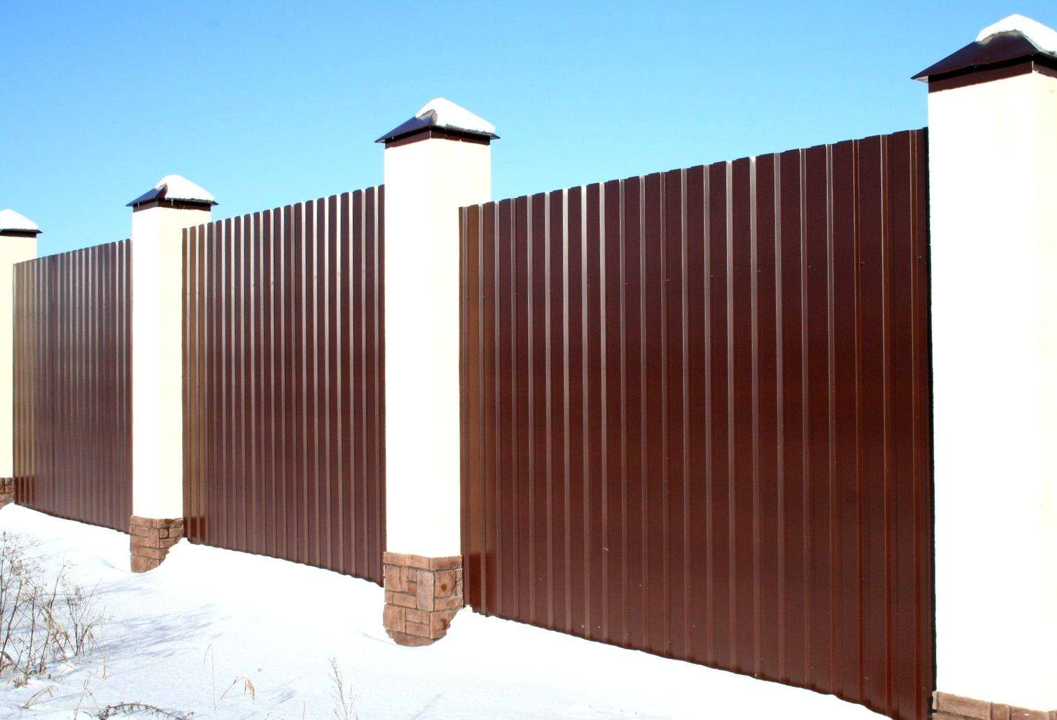 В регионах, где особенностью климата является ветреность, не забудьте учитывать парусность материала. Желательно применять профлист с высокой жесткостью, и устанавливать столбы не реже чем через 2,5 м.