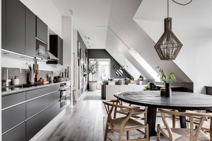 Планируя функциональную мансардную кухню, обратите внимание на основные элементы. В случае наклонов все должно быть подогнано по размеру и функционально расположено. Мансардная кухня с уклоном — проект, требующий от вас изобретательности и логики.