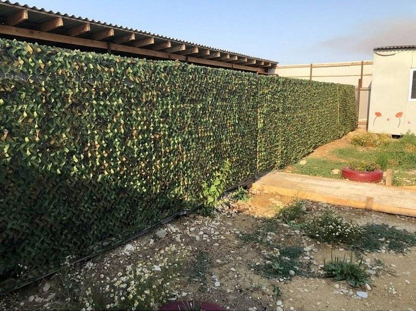 Ограждение дачного участка из камуфляжной сетки