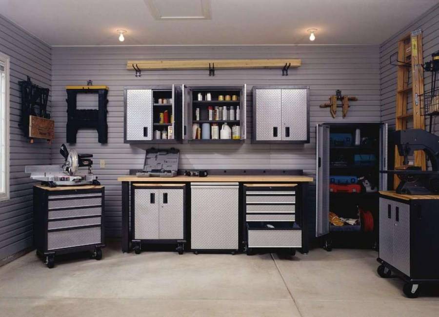 Также для обустройства гаража вам потребуется купить металлические шкафы для инструмента, стеллажи, верстаки и прочее гаражное оборудование, которое впишется в интерьер гаража.