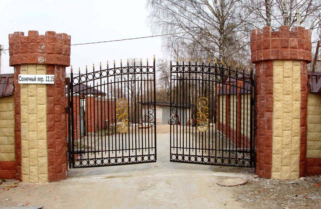 Полотно распашных ворот изготавливается из различных материалов. Это наиболее гармоничная конструкция с визуальной точки зрения