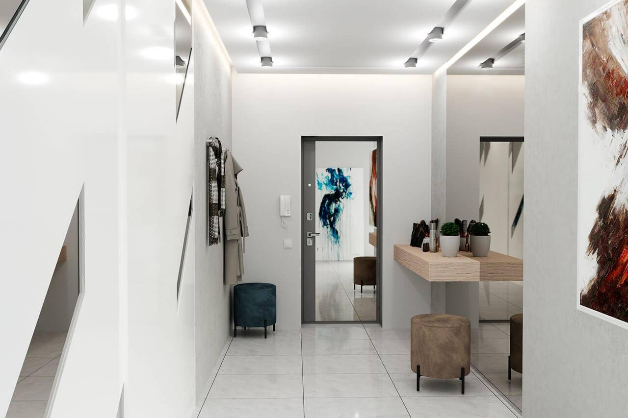Чтобы способности зеркальной входной двери стали многогранными, важно правильно подойти к дизайну интерьера прихожей.