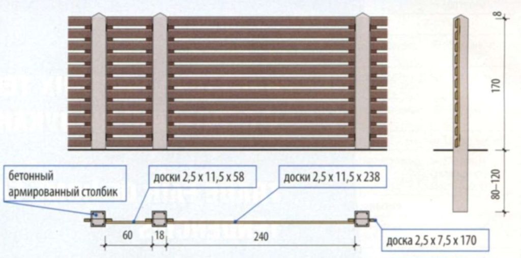 Рассмотрим изготовление реечного забора нескольких видов. Все они просты в монтаже и не требуют предварительной подготовки.