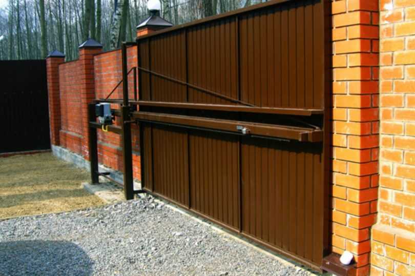 Выбор вариантов для установки металлических створок невелик — профильная труба или кирпичные столбы с закладными элементами, выполненными из металла, с армирующей сердцевиной. Последовательность действий: