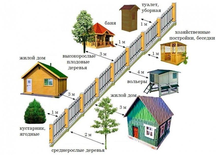 Разрешенные минимальные расстояния до забора при строительстве других объектов на участке