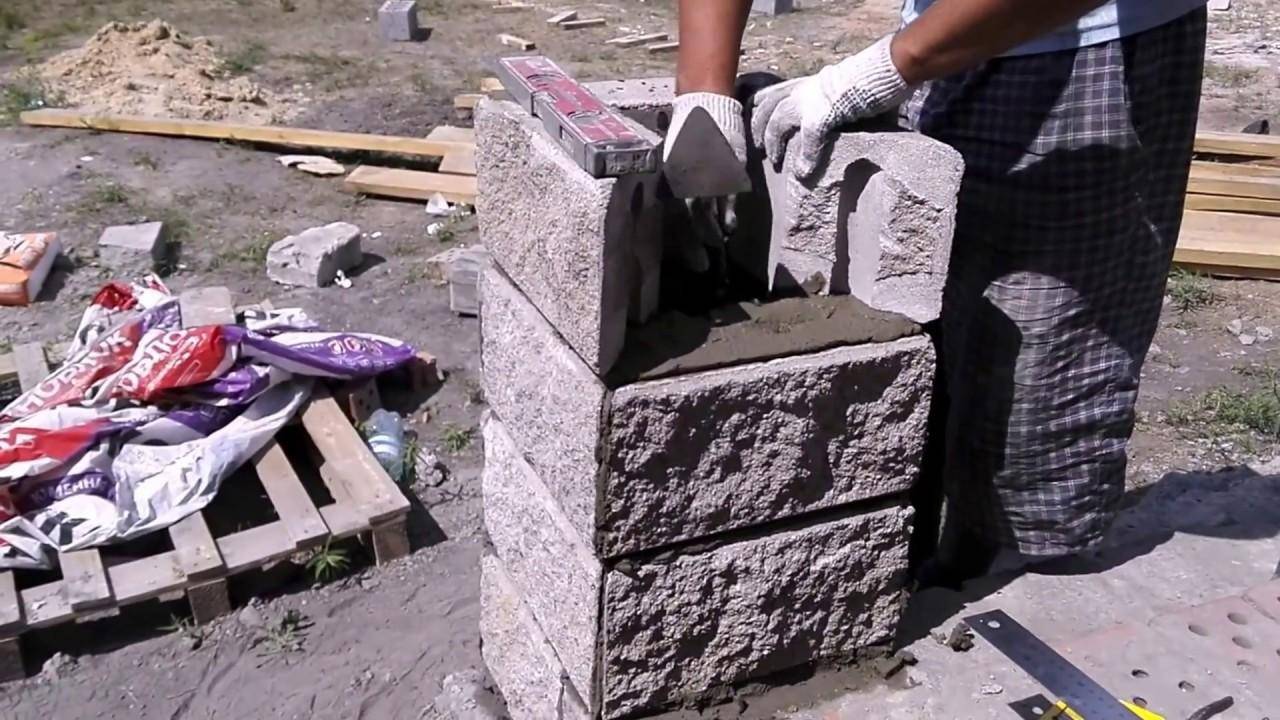 Чтобы столб со временем не заваливался, важно соблюдать вертикальность кладки. Вес каждого отдельного блока невелик, а значит сборку столба реально выполнить вручную. Производители предлагают разнообразные формы для бетонных опор оградительной конструкции